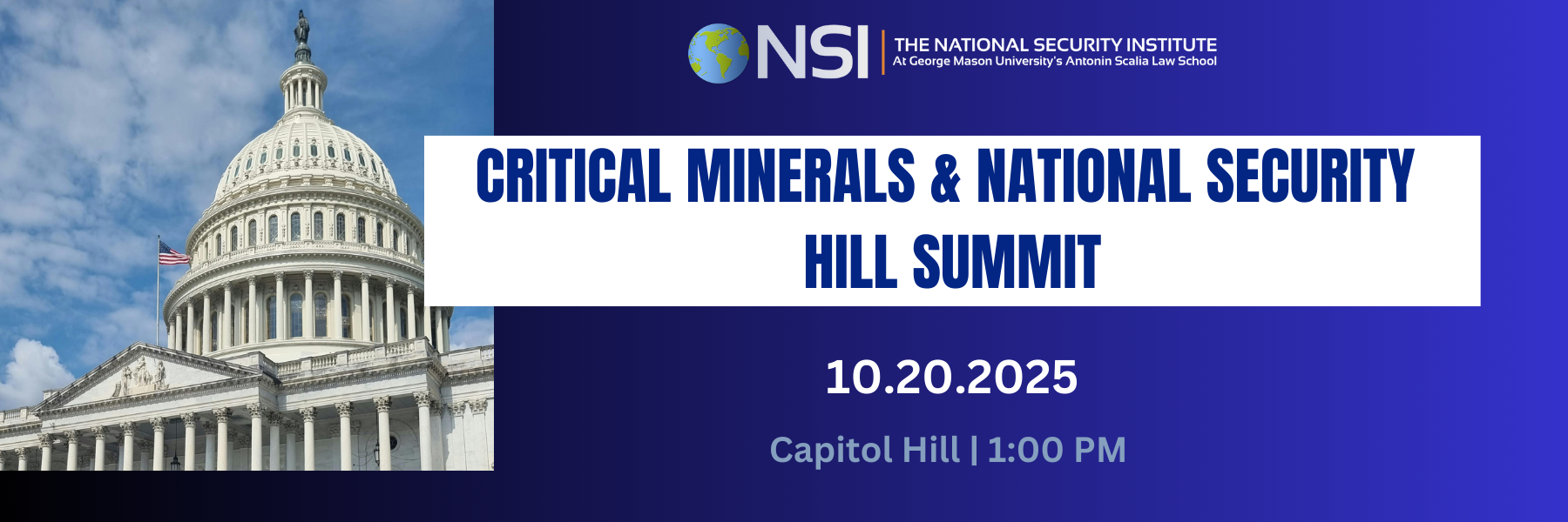 The National Security Institute is proud to co-host the 2025 Critical Minerals & National Security Hill Summit alongside PRISM.